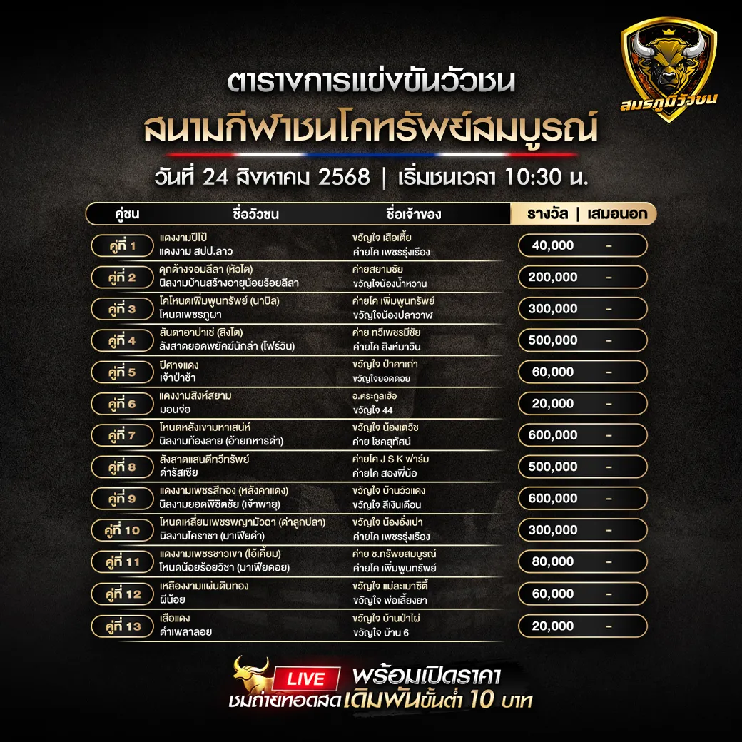 โปรแกรมวัวชน วันที่ 24 สิงหาคม 2568