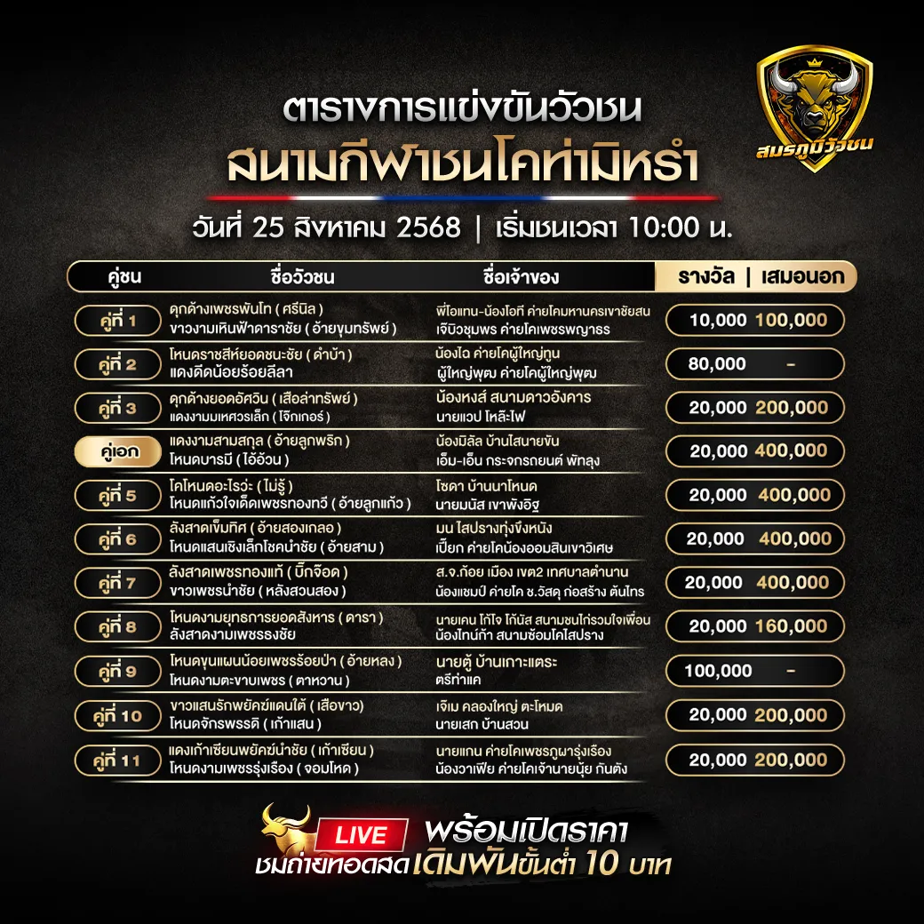 โปรแกรมวัวชน วันที่ 25 สิงหาคม 2568